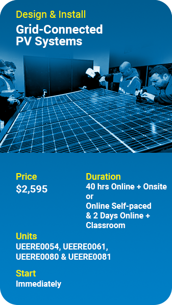 We are passionate about learning. Our primary focus is on supporting students and providing them with the confidence and competency required for a rewarding future working in this field. You will learn how to install, maintain and test Grid-Connected Photovoltaic systems and battery storage systems connected with it